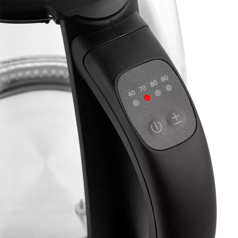 | Удобное управление На ручке чайника расположены: кнопка вкл/выкл, при удержании которой включается режим поддержания температуры, кнопка выбора температурных режимов работы и световые индикаторы, указывающие на выбранную температуру нагрева. | ![]() |