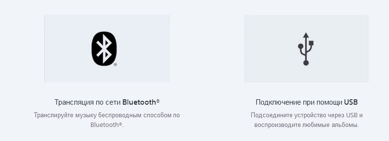 ![]() | Наслаждайтесь любимой музыкойПрослушивать любимые композиции можно, подключив саундбар через вход USB или используя функцию беспроводной потоковой передачи по Bluetooth®. |