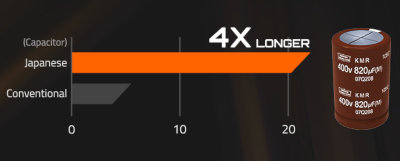 ![]() | Японские конденсаторыВо всех ключевых блоках схемотехники применяются высококачественные японские конденсаторы, которые обеспечивают безупречную эффективную работу и продолжительный срок службы изделия. |