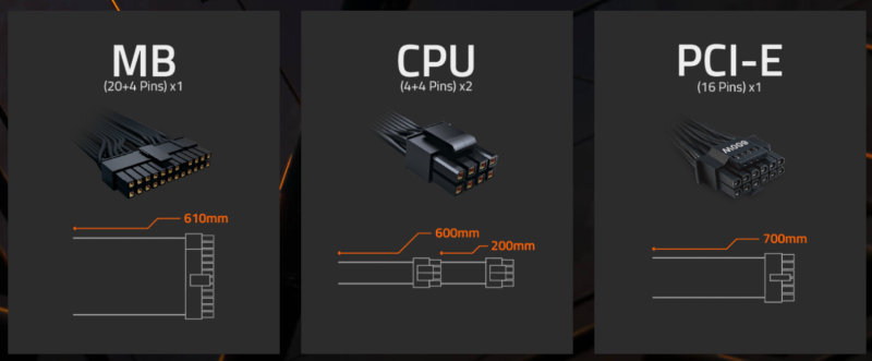 - Кабель с разъемом PCI-e 12+4 контакта x 1: 700мм*1