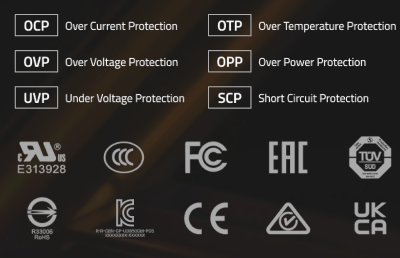 Безупречная защитаДля того, чтобы быть уверенным в безупречной работоспособности ПК в любом режиме, мы оснастили блоки питания AORUS совершенными встроенными схемами защиты OCP, OTP, OVP, OPP, UVP и SCP, а также успешно провели всестороннее тестирование и испытание наших изделий на соответствие нормам и правилам безопасности целого ряда стран. | ![]() |