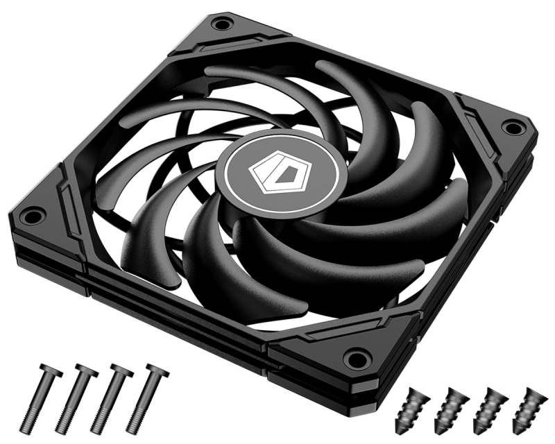 Вентилятор ID-Cooling представлен в черном корпусе с черной крыльчаткой и 9-ю лопастями, подшипником скольжения и антивибрационной прокладкой. Последний элемент важен для бесшумной работы. Данная модель обладает размерами 12x12 см при толщине всего 1.5 см. Для питания используются порты 4-pin. Устройство оснащено системой автонастройки скорости в диапазоне от 500 до 2000 об/мин, чего достаточно для эффективного охлаждения рабочих элементов процессора.