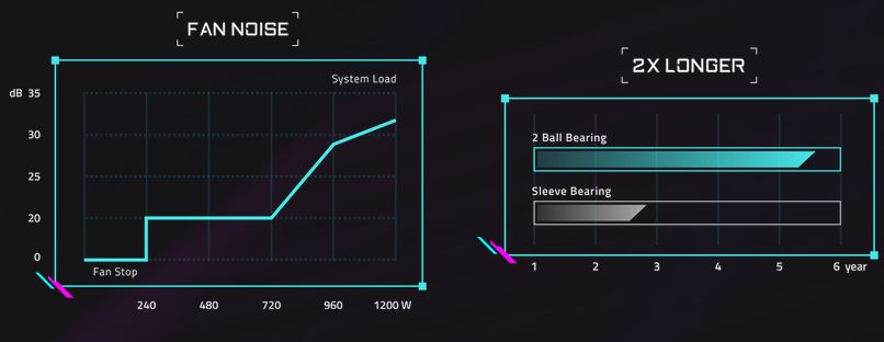 | 140-мм вентилятор, два высококачественных подшипника качения Скорость вращения вентилятора зависит от уровня нагрузки на систему. Вентилятор остановиться, если система переходит в режиме простоя или уровень нагрузки не превышает 20%. Схема с двумя подшипниками качения обеспечивает существенно более продолжительный срок службы изделия. |