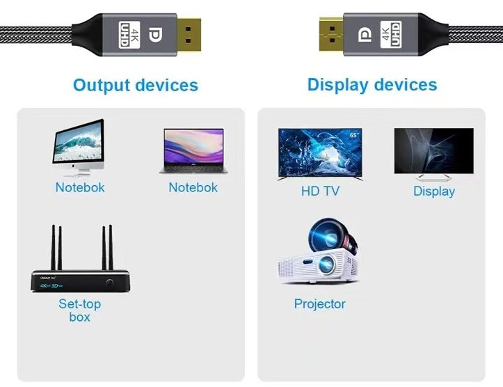 Кабель KS-is KS-771 соединяет компьютер, оборудованный портом DisplayPort (DP, DP++, DisplayPort++), с HD-монитором или проектором с входом DisplayPort в режиме расширения рабочего стола или зеркальном режиме. Поддерживает разрешение видео до 4K (3840x2160, Ultra HD) и 1080P (Full HD), а также безупречную передачу звука для несжатых цифровых каналов 7.1, 5.1 или 2. Неизолированные медные проводники и экранирование из фольги и оплетки вместе обеспечивают превосходную производительность. Кабельный разъем с защелками гарантирует надежное соединение с помощью кнопки разблокировки, которую необходимо нажать перед отключением.