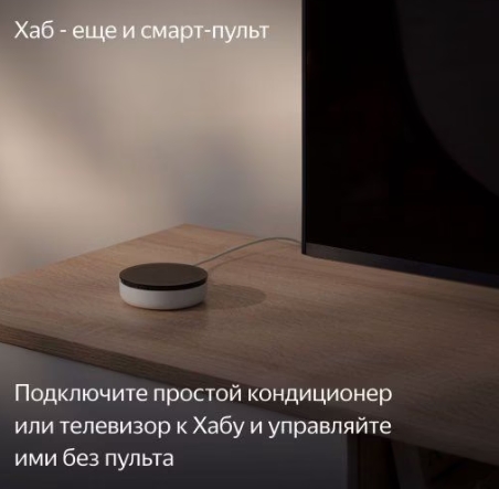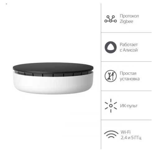 Универсальный Хаб Яндекса для простого и быстрого подключения разных приборов к умному дому с Алисой. И единая точка управления всеми устройствами. С Хабом умный дом сможет больше. Наполните его датчиками и множеством других Zigbee-устройств. Хаб соединит их с Яндекс Станцией, и вы будете управлять умным домом через приложение или голосом. Подключайте датчики Яндекса с Zigbee к Хабу напрямую, объединяйте с другими устройствами умного дома и задавайте сценарии. Множество процессов станут автоматизированными. По Wi-Fi Хаб соединяется с лампочками, чайниками, пылесосами и тысячами других разных производителей. А ещё Хаб – это смарт-пульт, действующий на 360°. Даже если у вас дома простой телевизор или кондиционер, соедините их с Хабом при помощи ИК-подключения и управляйте без пульта. Через приложение Дом с Алисой или через колонку голосом: «Алиса, включи телевизор».
